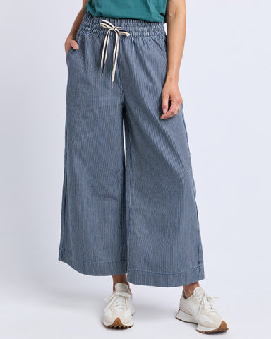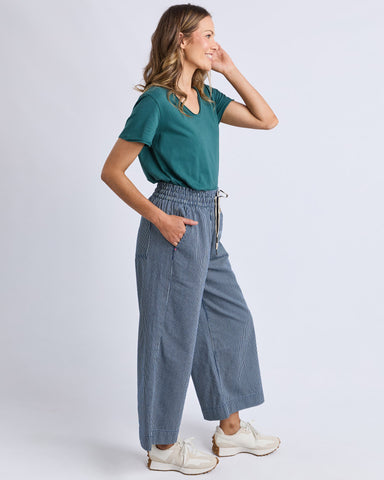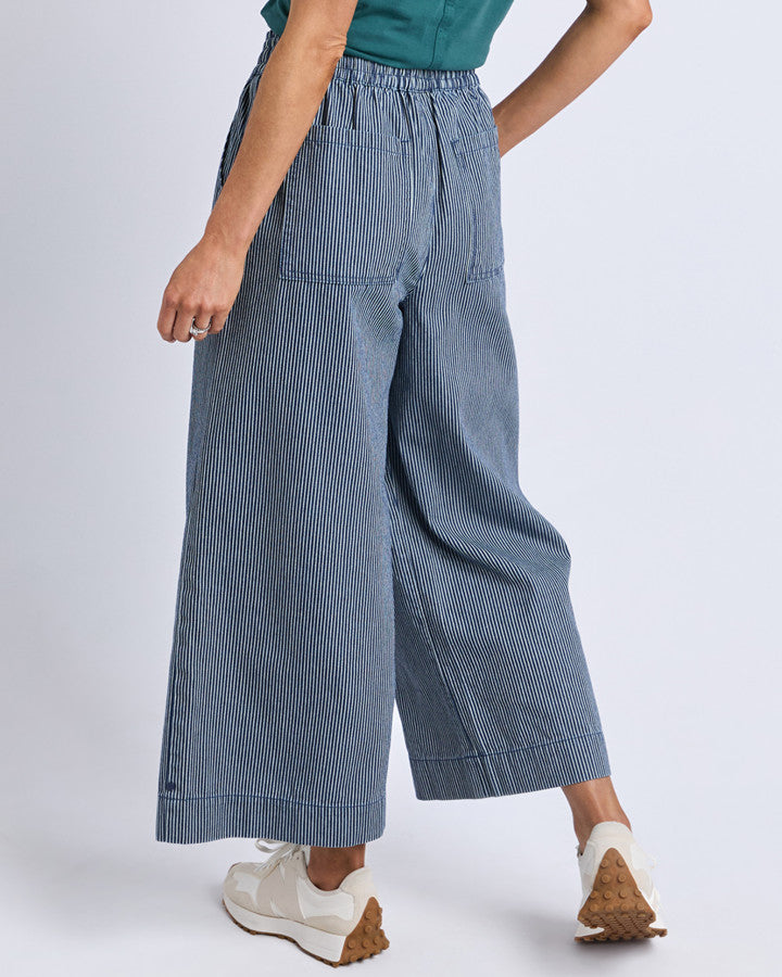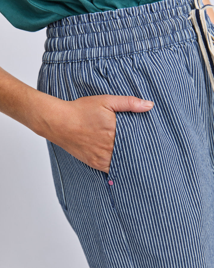 Effortlessly stylish, the wide leg Julia Pinstripe Denim Pant combines classic blue and white pinstripes with modern comfort. Crafted from soft, lightweight denim, these pants feature a practical elastic waist for all-day ease and functional pockets. Perfect for casual outings or relaxed weekends, this versatile piece transitions seamlessly from day to night. Generous sizing, if inbetween please downsize.