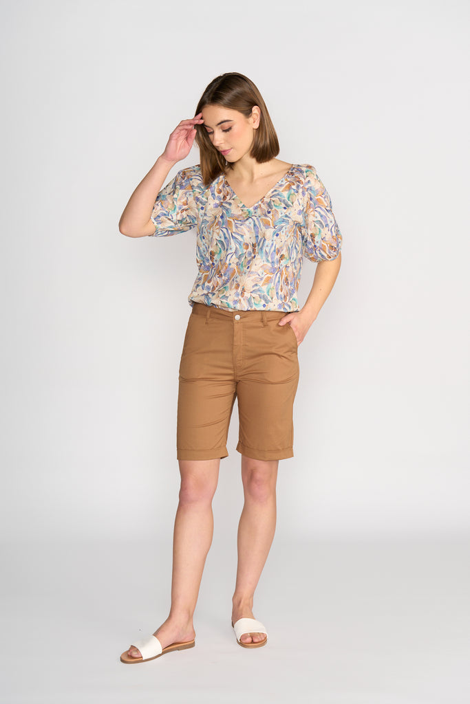 These slim-leg above-knee shorts are made from a cotton-elastane fabric for a comfortable, flexible fit. Featuring a zip fly, angled front pockets, back patch pockets, and a turned-up hem, they’re an easy, casual essential for warm days. The fabric is extremely lightweight.